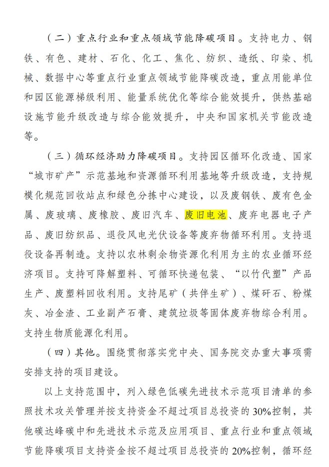 《节能降碳中央预算内投资专项管理办法》政策下废旧锂电池在循环经济中的重大作用分析
